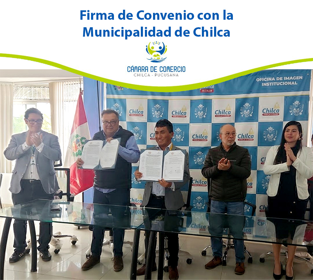 Este 31 de octubre de 2025 se marcó un hito histórico en Chilca, con la firma del Convenio de Cooperación Interinstitucional entre la Municipalidad de Chilca, representada por el Alcalde Félix Choquehuanca Quezada y La Cámara de Comercio Chilca-Pucusana (CCCHP) representada por el Presidente, Sr. Antonio Gnaegi Urriola. También estuvieron presentes el economista Francisco Benel Bernal, Coordinador Nacional de Asistencia Técnica del Ministerio de Vivienda, Construcción y Saneamiento, y finalmente el equipo técnico encabezado por la Arquitecta Matilde Elvira Hinostroza.