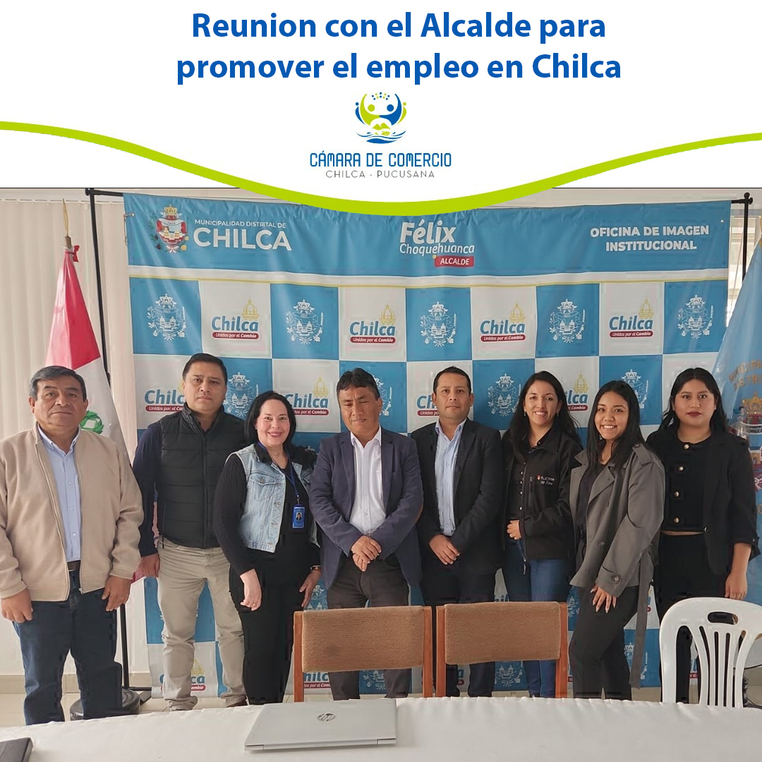 El jueves 16 de octubre la Cámara de Comercio Chilca-Pucusana (CCCHP) se reunió con el Alcalde de Chilca, Sr. Félix Choquehuanca Quezada y el Sub Gerente de Comercialización, Jaime Miguel Bernal para promover el empleo en Chilca y ver capacitaciones para la población de Chilca y que a su vez tengan mejores posibilidades de empleabilidad a través de nuestras empresas Socias.